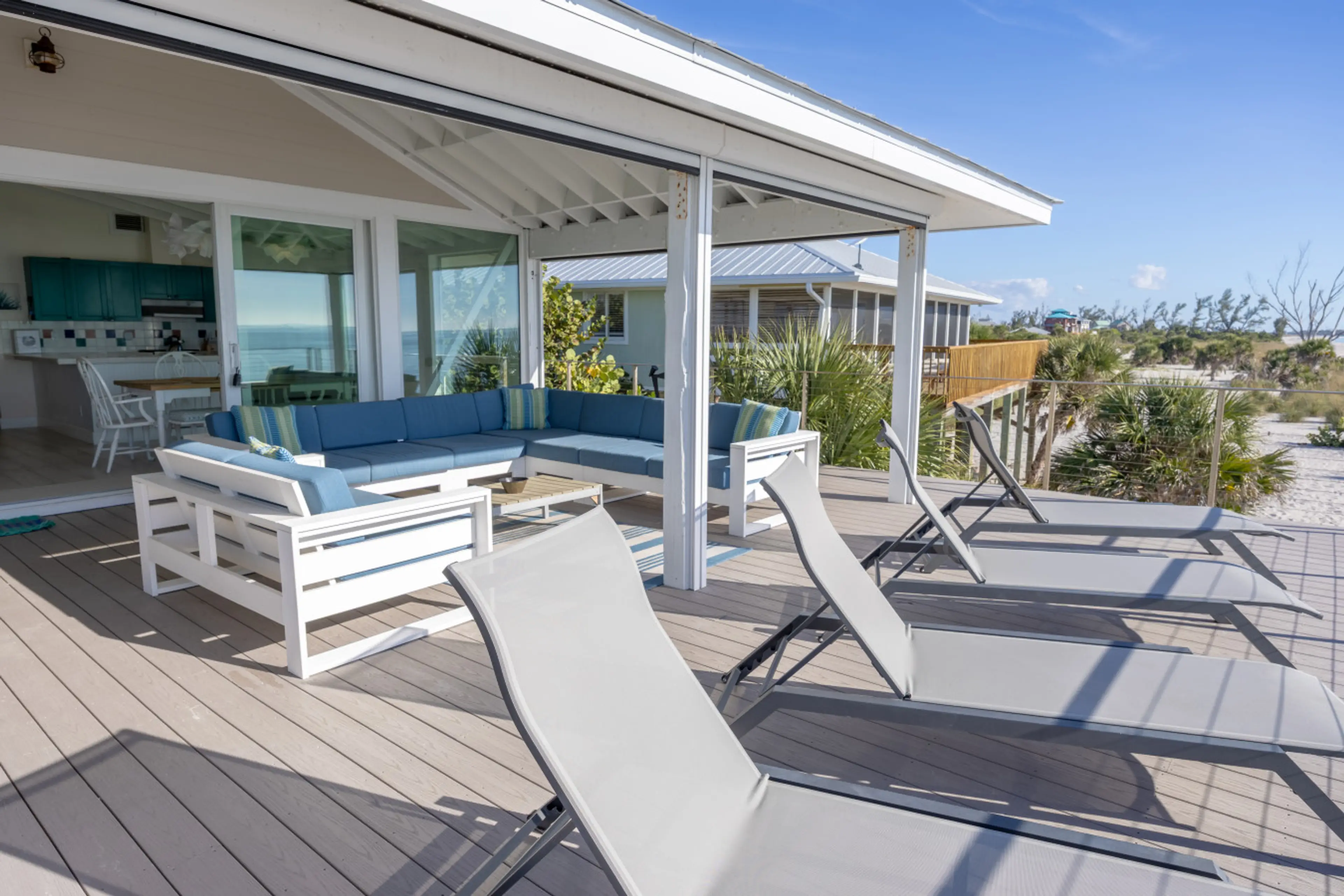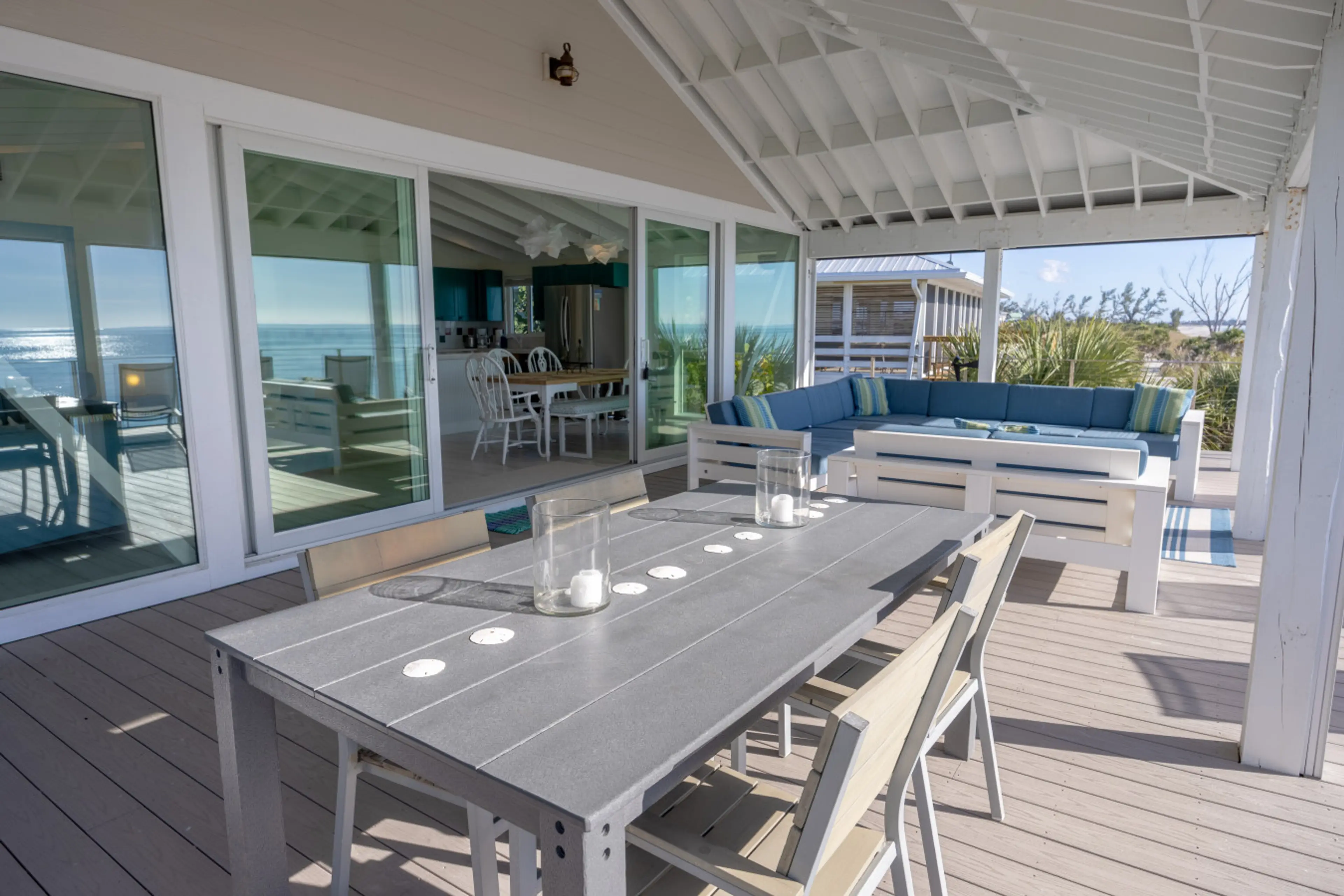 The Sunset Beach House has unobstructed views of the beach and gulf. The covered deck space with large seating and dining area were perfect for our family. The lounge chairs in the open deck space allowed for sunbathing and dining space provided additional sunny eating area. The inside kitchen table was perfect for our family of 6 to eat and play games. What I found unique to this property was how well stocked the home was. It was really nice to have those stocked condiments, extra coffee filters, even medical kit. The towels and beach chairs were in great shape. The house was cozy but spacious. The location is close to the bay dock but also right on the beach! The owner provided all the information we needed to make our reservations for golf cart, ferry, pizza delivery and Brett’s Taxi service. Do not hesitate to reserve this home!